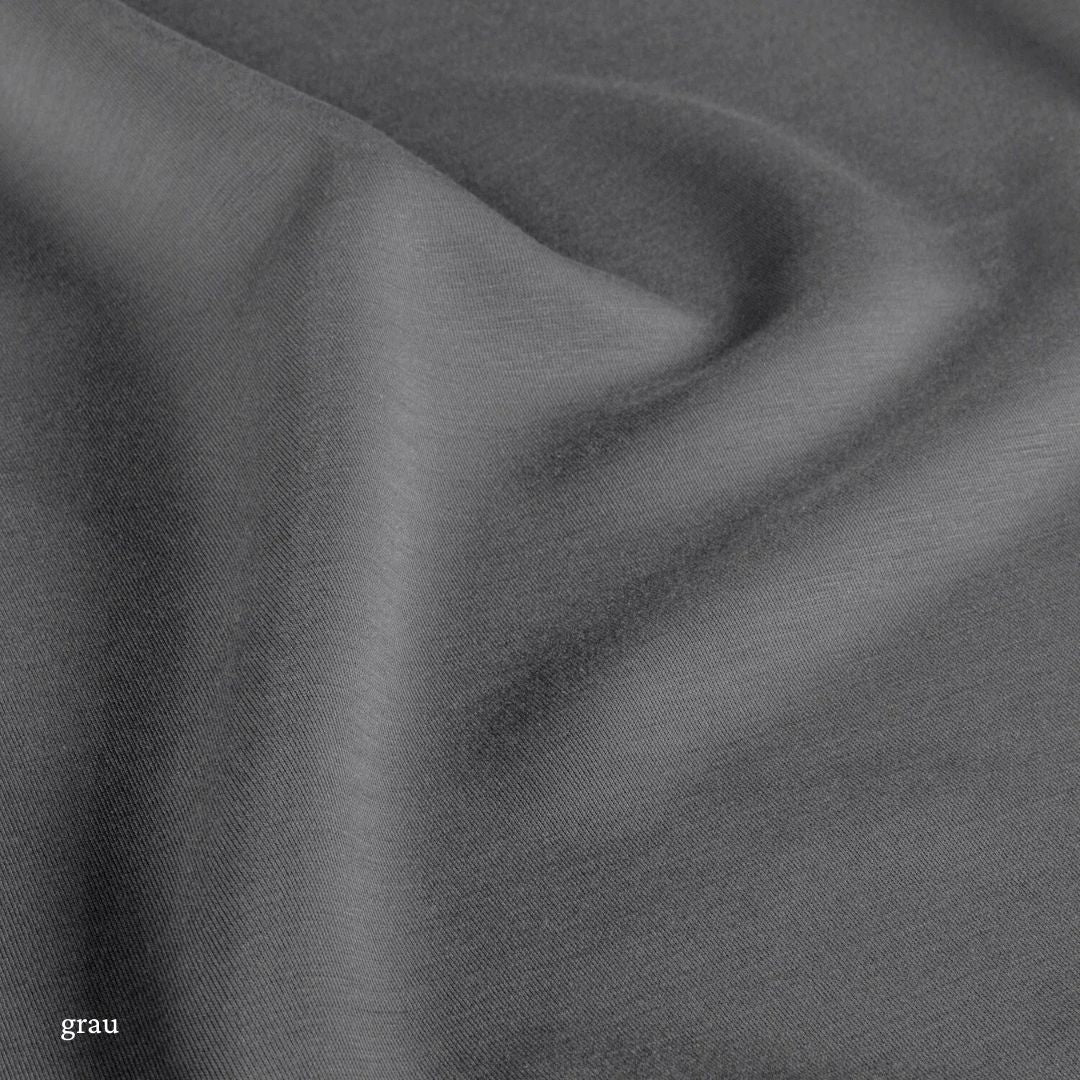 Dieser hochwertige Bambus Interlock Jersey begeistert durch seinen seidig weichen Griff und natürlichen Glanz. Der Stoff ist atmungsaktiv, temperaturausgleichend und wirkt leicht antibakteriell – ideal für sensible Haut und nachhaltige Mode. Perfekt für Shirts, Babybekleidung, Nachtwäsche oder Unterwäsche. Durch die Interlock-Bindung ist der Stoff besonders formstabil und blickdicht.