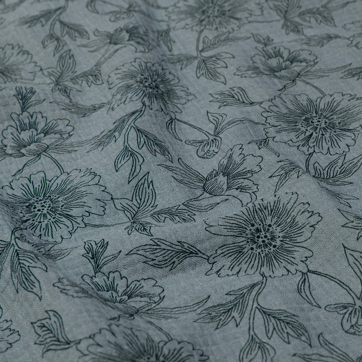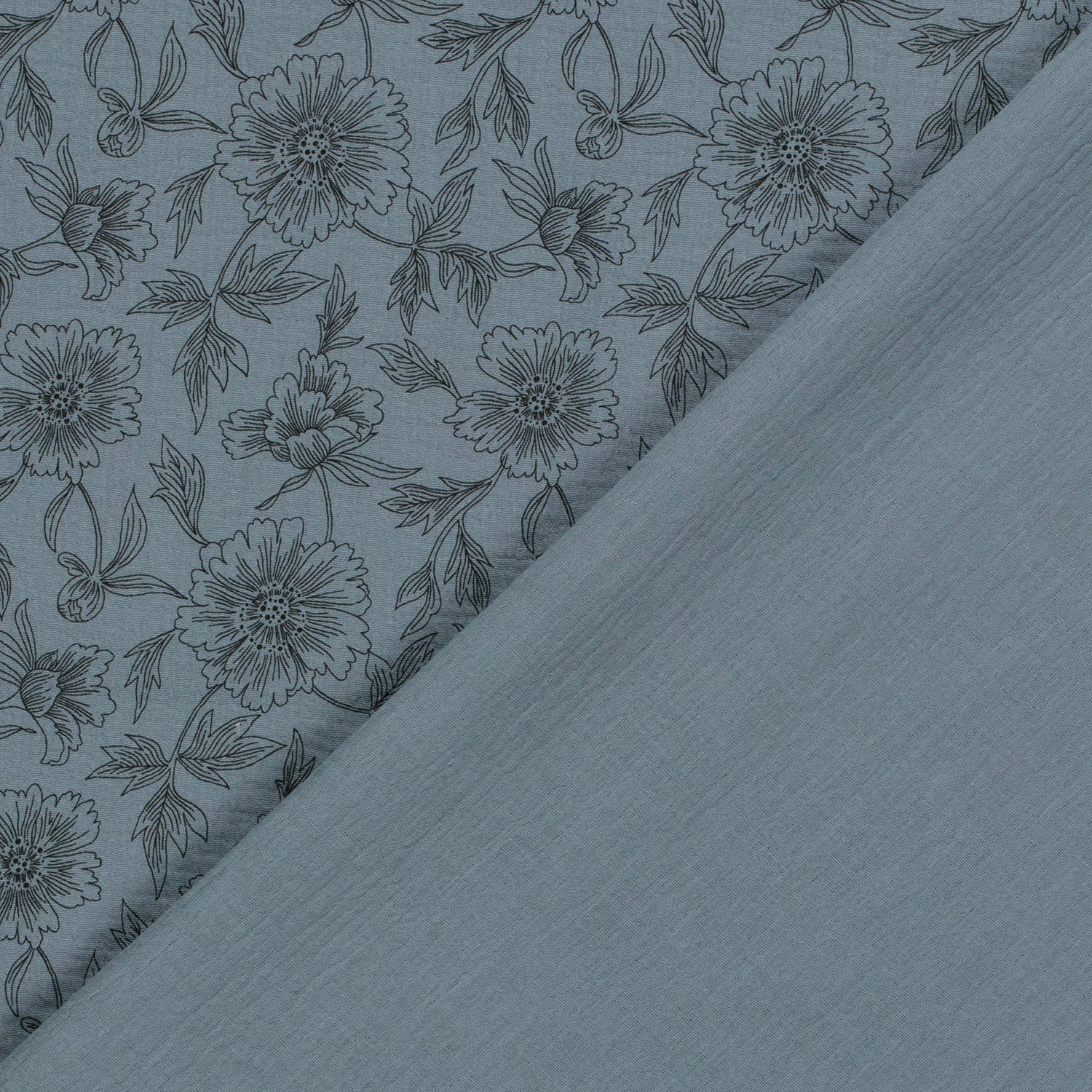 Musselin "Blumenkonturen" rauchblau